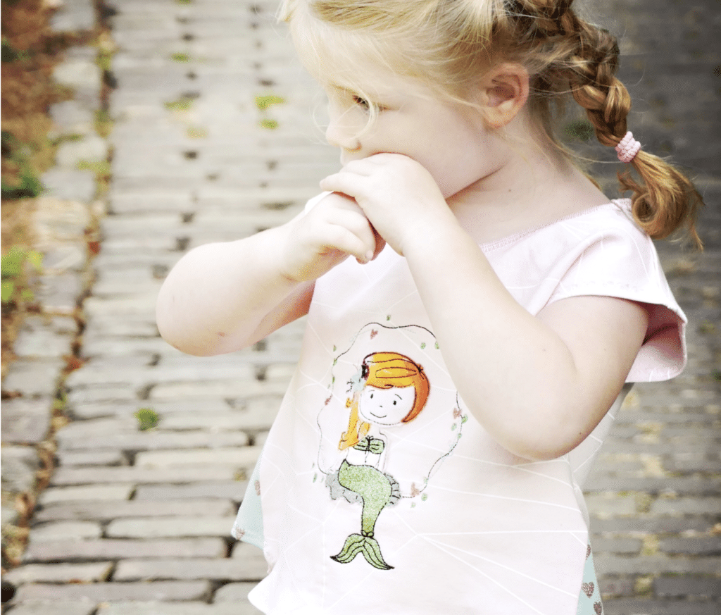 Als ich die Datei von der Meerjungfrau sah, fand ich sie perfekt für meine Idee. Den Meerjungfrauen-Schwanz und das Bustier wollte ich mit glitzernder Folie, die zum plotten geeignet ist, besticken.
