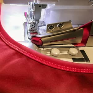 In diesem Kurs geht es nicht ums Einfädeln einer bestimmten Maschine und die Details einer Naht selbst, wie z.B. Dehnbarkeit etc, auch wenn das natürlich kurz angesprochen wird. Der Kurs behandelt die Besonderheiten des Binders und die Arbeit damit an der Maschine vom Zuschnitt bis zum Positionieren und Einfassen selbst