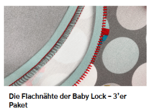 Für alle Maschinen mit automatischer Fadenzufuhr (Enlighten, Eclipse, Evolution, Ovation, Gloria & co) „Die Flachnähte der Babylock“ Teil 1A und 1B (aufgenommen auf der Enlighten und der Gloria) Gesamte Dauer 1:00:31